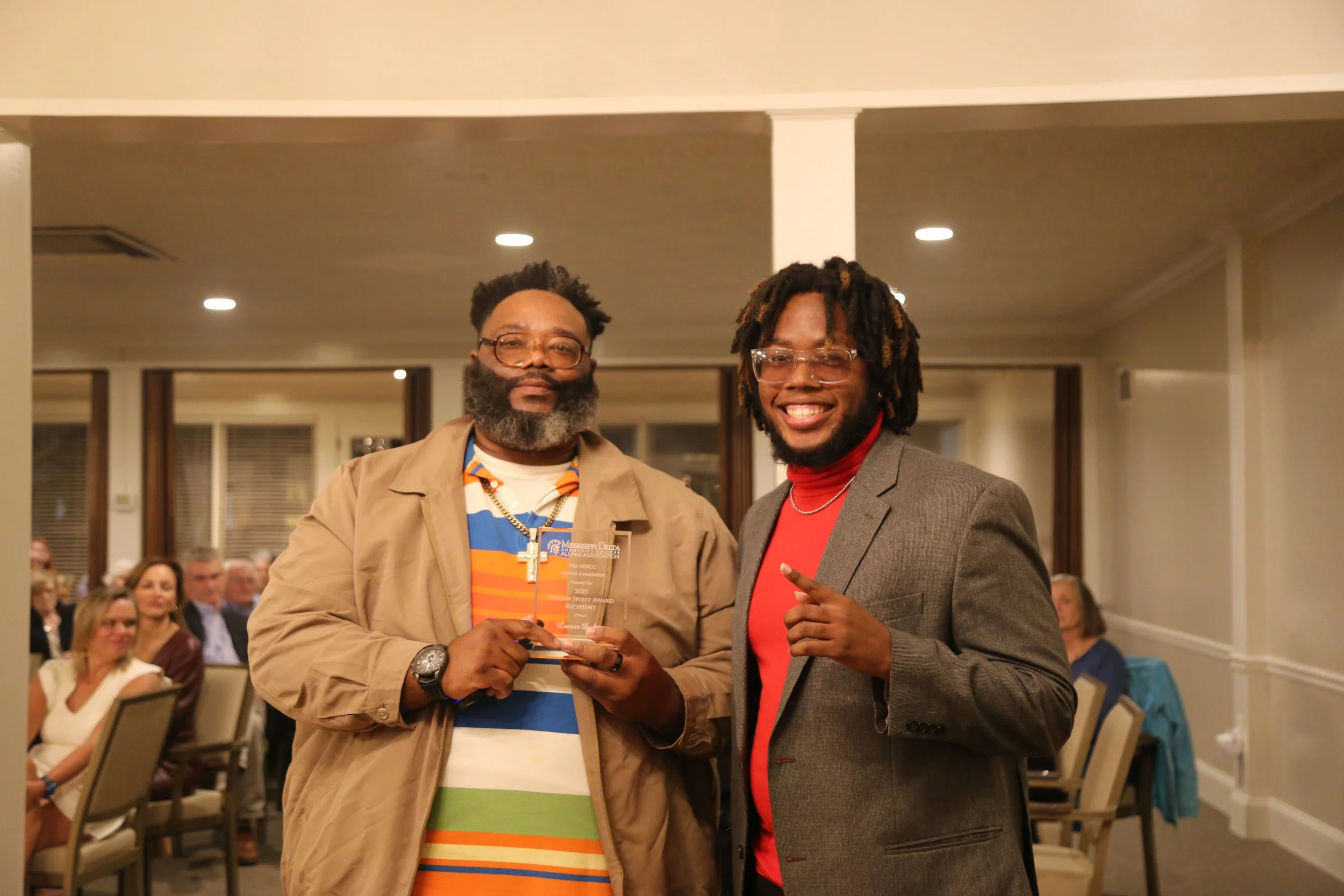 In addition, Lamar Dukes received the Trojan Spirit Award, an honor reserved for individuals who demonstrate outstanding loyalty, enthusiasm, and service to the MDCC community. Duke’s enduring support and active engagement have made a lasting impact on the college, its students, and its alumni network. JaCoby Braboy welcomed Duke and presented him with his plaque at the social.